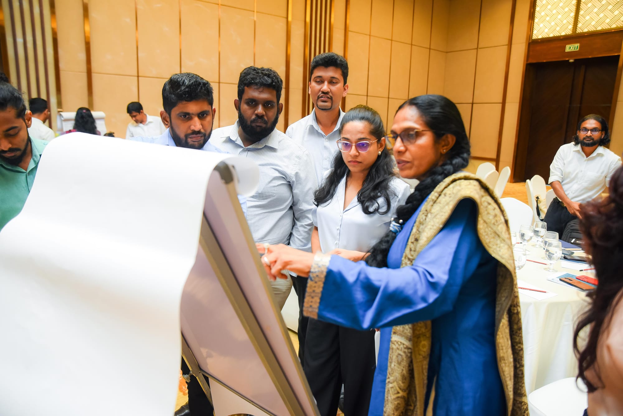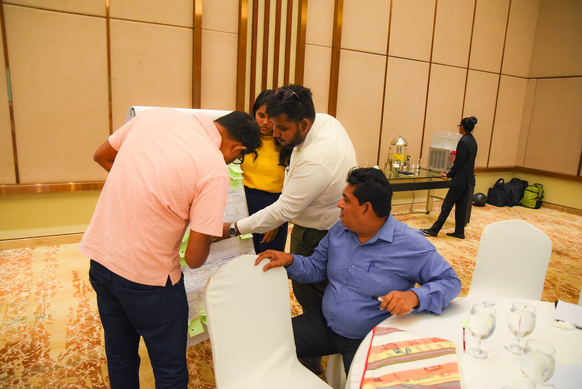 Participants engaging in the workhop activity: mapping plastic data in Sri Lanka across the lifecycle using the Plastic Data Checklist. Credit: Zocreative Labs.