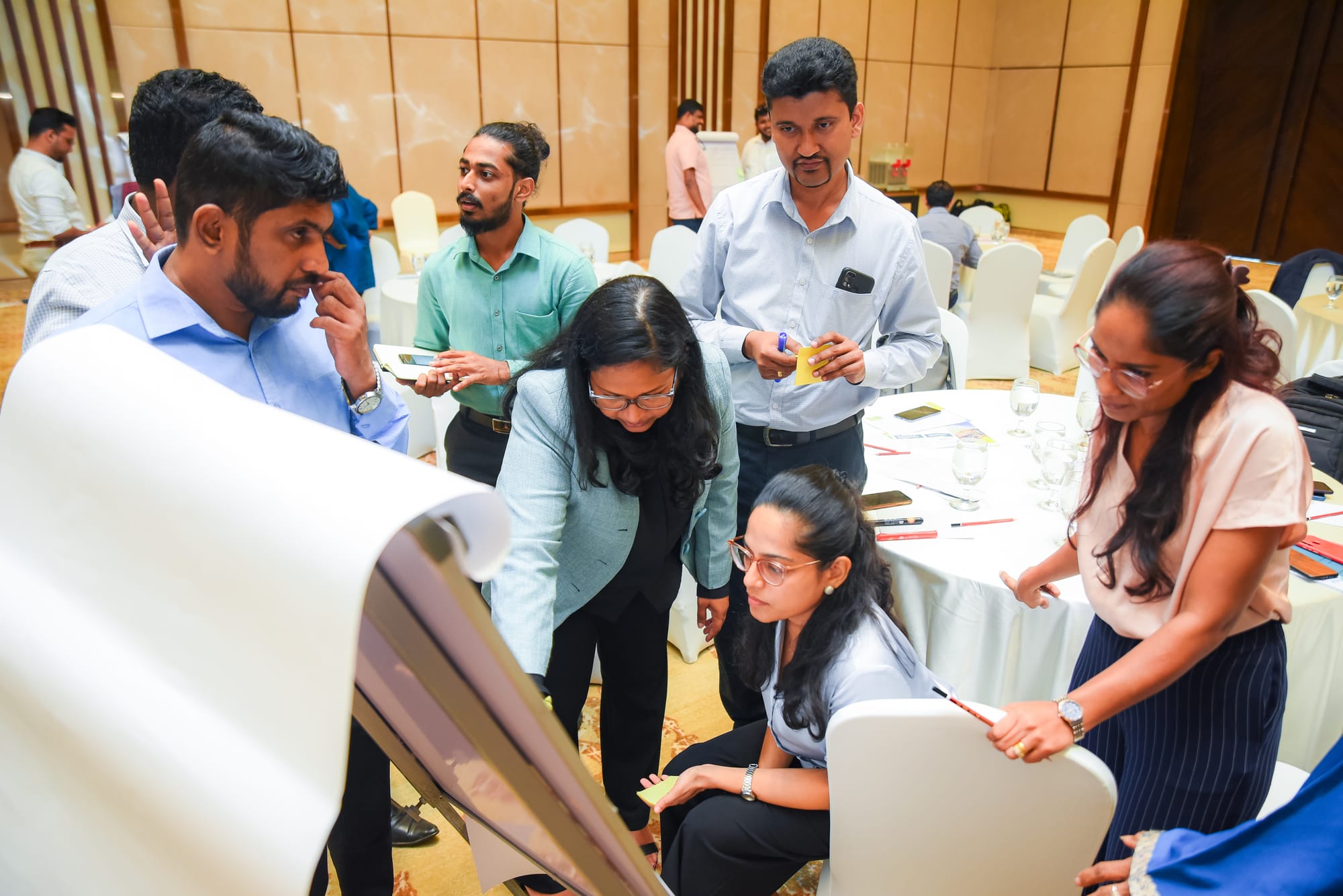 Participants engaging in the workhop activity: mapping plastic data in Sri Lanka across the lifecycle using the Plastic Data Checklist. Credit: Zocreative Labs.
